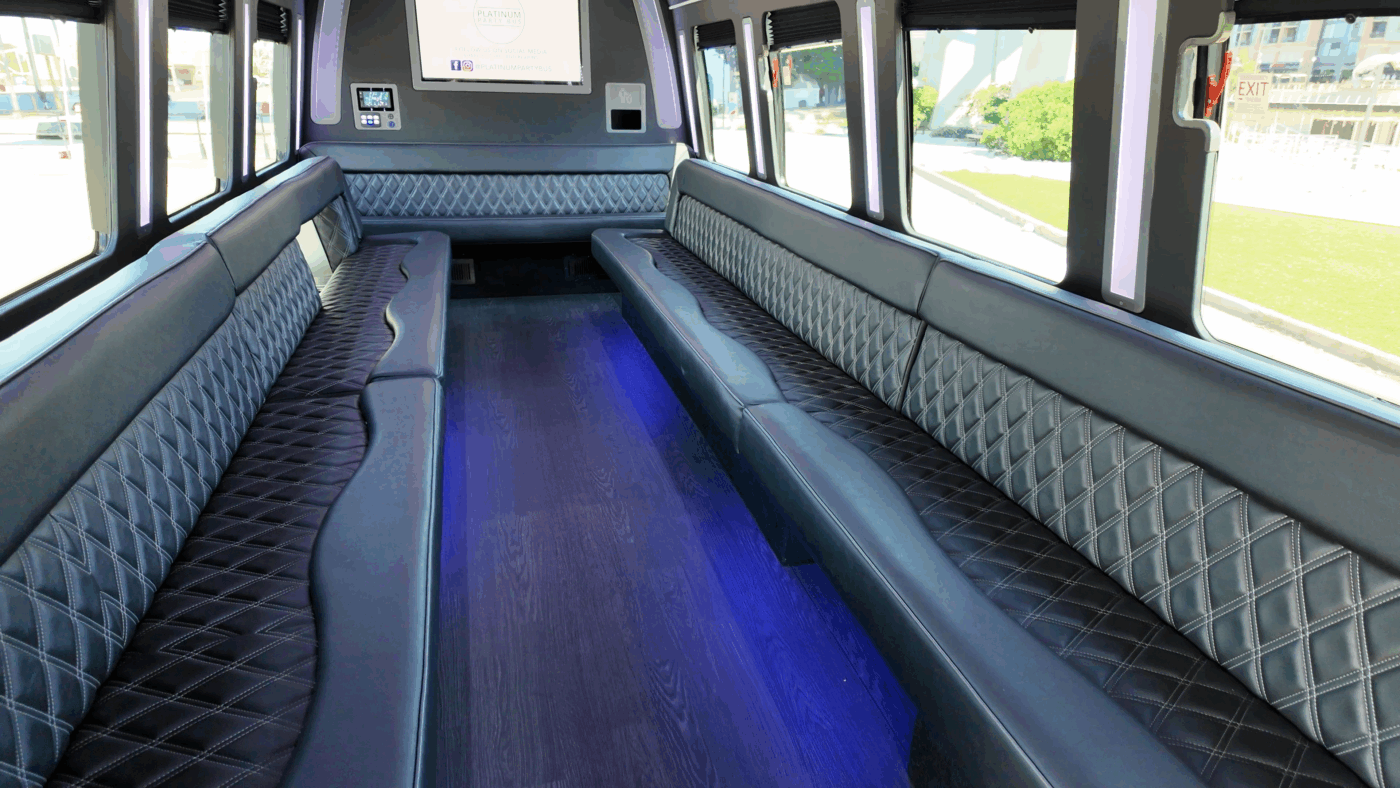 The 16-Passenger Party Bus serves a different purpose. With its lounge-inspired wrap-around seating, it’s designed for bridal party transportation, smaller guest groups, or situations where the ride itself is part of the experience. The atmosphere is social and celebratory in a way a traditional shuttle isn’t.